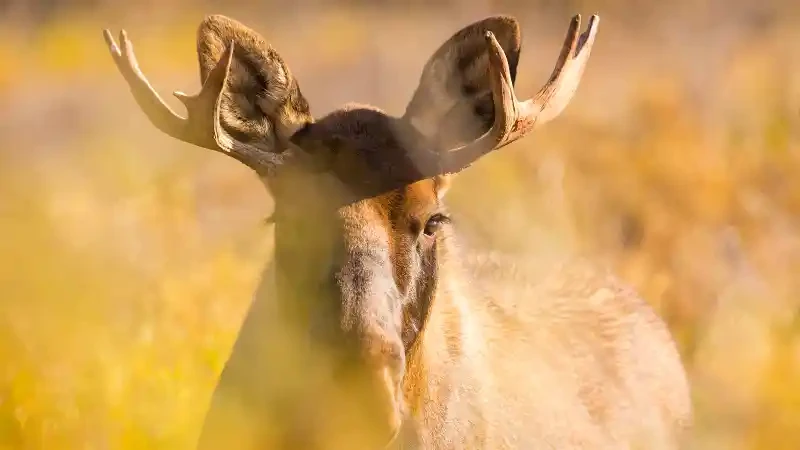 迪纳利国家公园中的一头年轻雄性驼鹿, 阿拉斯加, 美国 (© Grant Ordelheide/TANDEM Stills + Motion)
